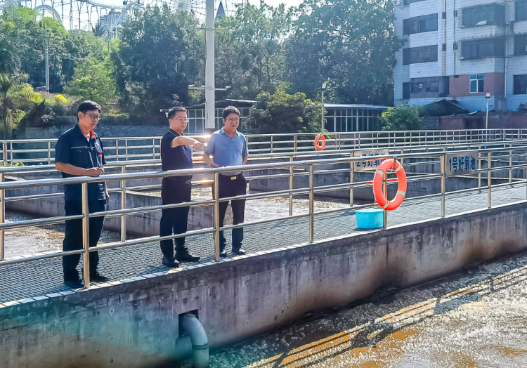 李楊董事長深入東城分公司炳草崗水廠、污水分公司大渡口污水處理廠生產現場,對現場防汛安全措施、邊坡擋墻、職工防汛防地災教育培訓情況、日常巡查維護記錄、環境安全管理、污水(泥)處置進行詳細了解。重點檢查了防汛物資供應保障、汛期值班值守、高峰供水調度和生態環保、出水口水質達標等工作。